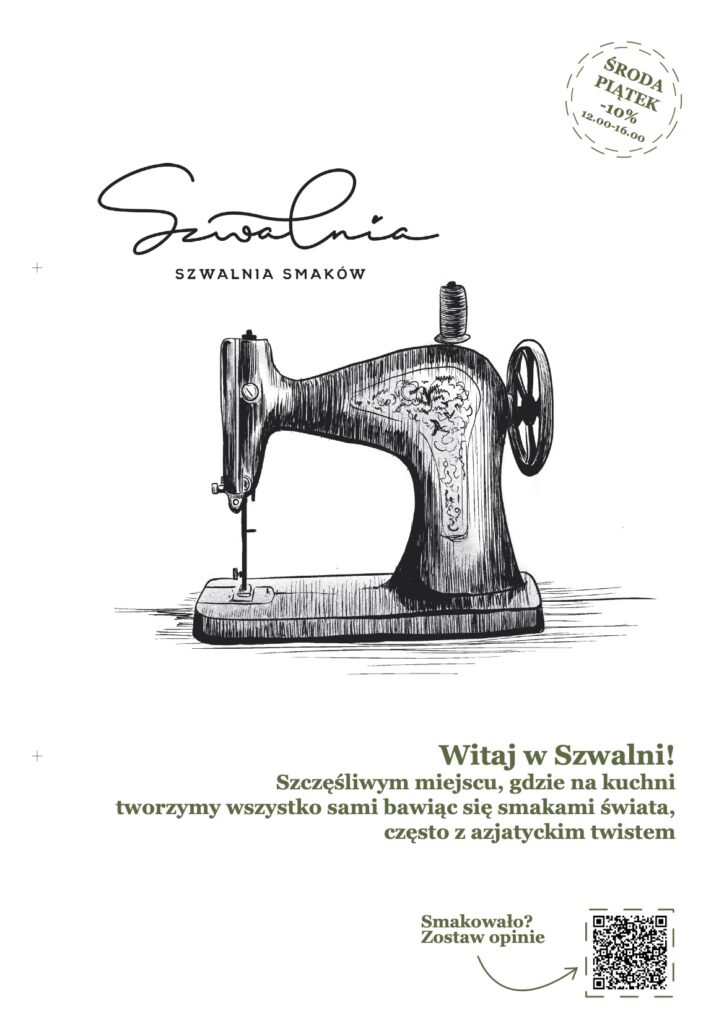Jesteśmy dla Was:Wt: 16:00 – 21:00Śr – Czw: 12:00 – 21:00Pt – Sob: 12:00 – 22:00Nd: 12:00 – 18:00 Zobacz naszą ofertę na przyjęcia Firmowe przyjęcia świąteczne Jesteśmy na Zjedz.my, zarezerwuj u nas stolik: Zarezerwuj stolik Dowozimy zamówienia przez: Przeczytasz i obejrzysz o nas: Nasze menu: Szwalnia – Kuchnia i desery Piotrkowska 217 90-451 Łódź szwalniasmakow@gmail.com +48 603 036 113 Facebook Instagram